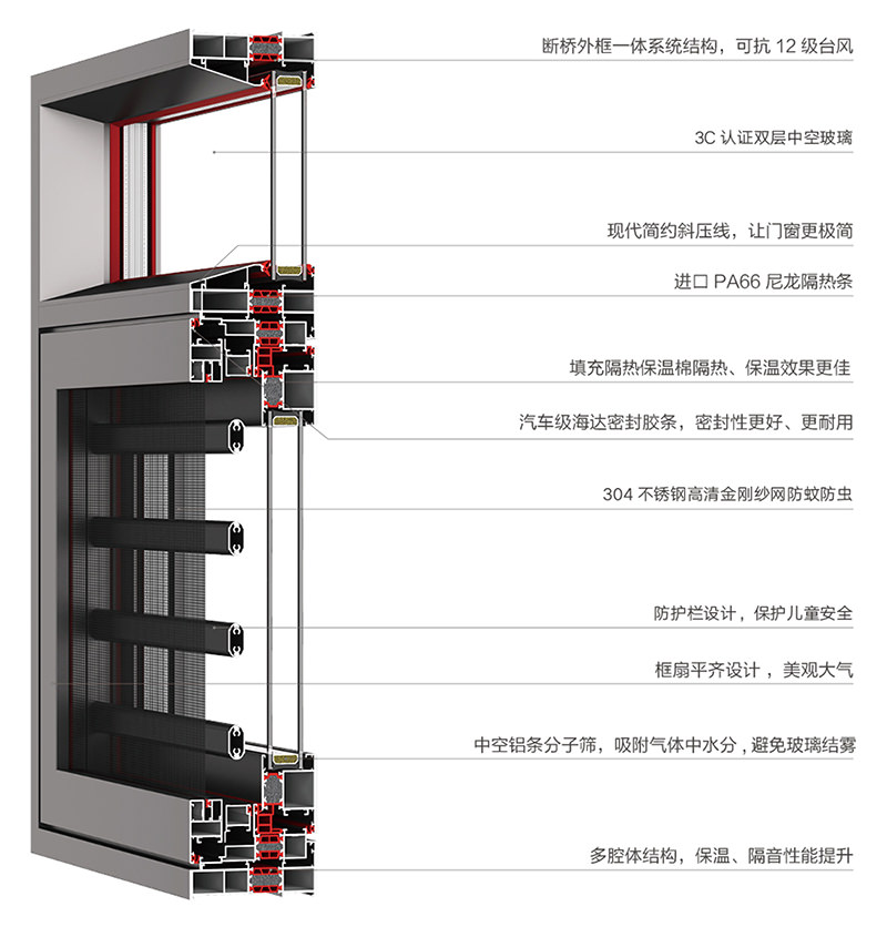 汽车级原生尼龙隔热胶条隔热增加腔体设计,减少冷热传导保温性能更优异,有效隔些热量和声音传递。