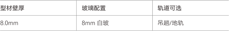 型号:40 系统 类型:推拉门 颜色:炫羽白 材质:8.0mm 铝合金 玻璃:下封板+外置格条 规格:W:600-1200 H:2200-2400/2401-3050